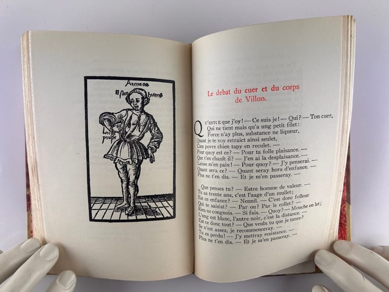 Paris Librairie Rombaldi 1942 Petit in-8 (19,5 x 13,5 cm.), 198-(3) pp. pleine reliure de vélin blanc, tête et titre dorés. Edition illustrée de nombreux bois gravés tirés d'ouvrages du XVème siècle.
