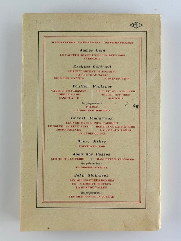 Gallimard. 1946. In-12. Broché. Etat d'usage, Couv. convenable, Dos plié, Non coupé. 267 pages. Papier jauni.. . . . Classification Dewey : 810-Littérature américaine