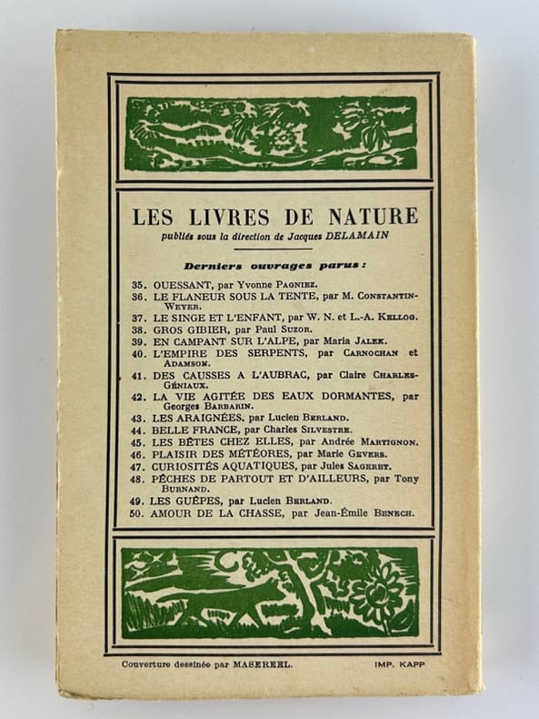 Paris Editions Stock, Les Livre de Nature 1940, in-8, broché, 217p. Couverture dessinée par Masereel. Petite inscription sur la page de garde. Bon état.