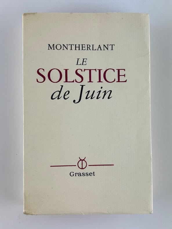 Edition originale, un des exemplaires du service de presse. Dos légèrement inévitablement insolé, solstice d'été oblige ! Envoi autographe signé d'Henri de Montherlant à César Santelli. - Photographies et détails sur www.Edition-Originale.com -