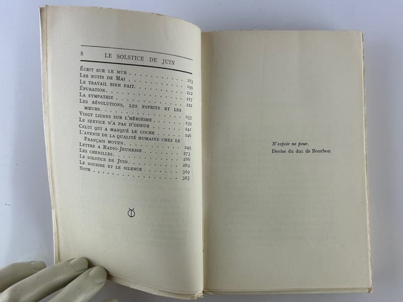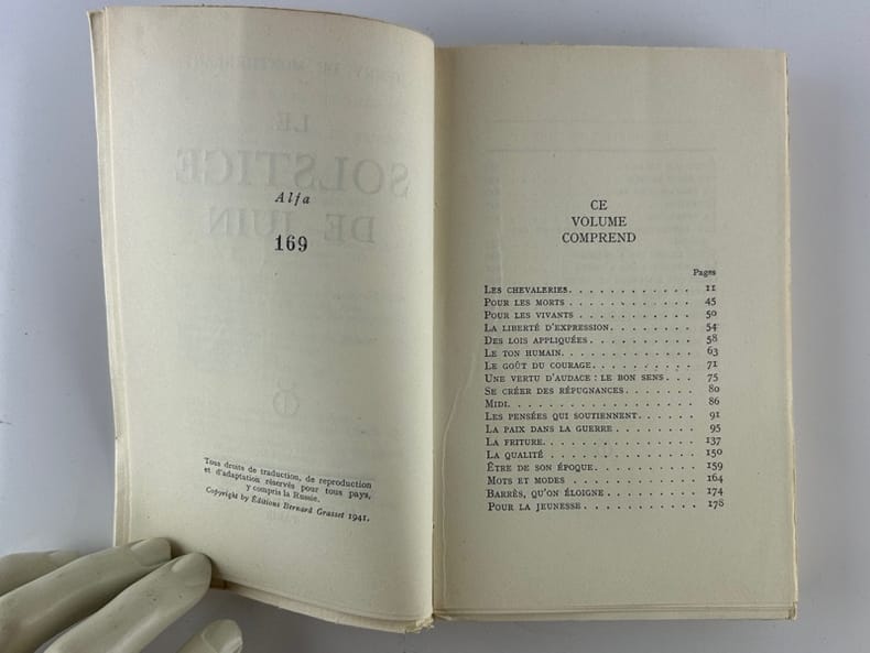 Grasset 1941 (retirage de 1942), in-12 broché, 325 p. (plats de couverture et dos légèrement défraîchis, sinon très bon état) Sur bon papier. Considérations et souvenirs, notamment sur la guerre de 40 ; à lire pour comprendre les reproches faits à l'auteur par les épurateurs du Conseil National des Ecrivains.