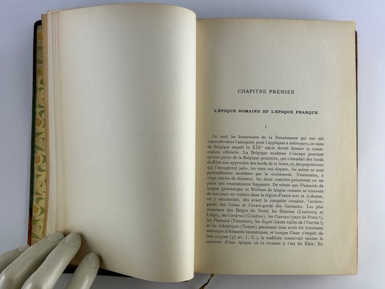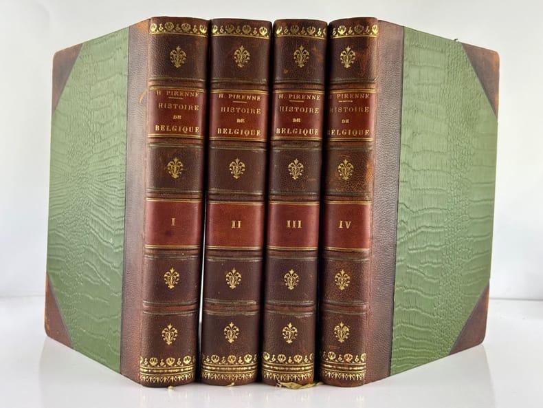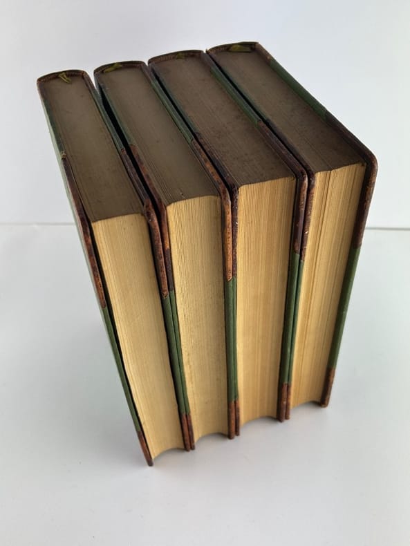 Bruxelles Henri Lamertin, Libraire-Editeur 1909, 1908, 1912, 1911, in-4, demi-reliure à coins, plats de papier vert, gardes décor art nouveau, 462, 509, 509 & 497pp. Bon état. Texte très frais.