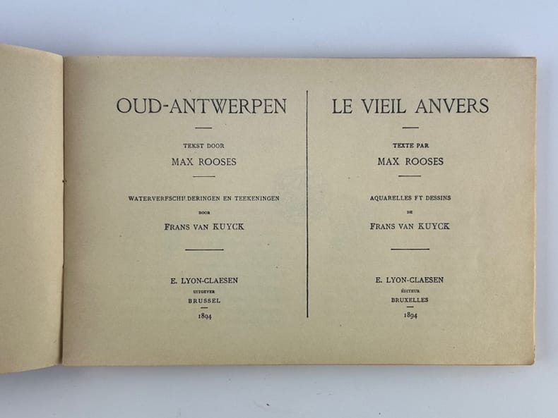 Brxelles E. Lyon-Claesen 1894, 23,5 x 15,5 cm, broché, 95p. Bon état. Texte néerlandais - français, carte dépliante in fine, avec liste des habitants du vieil Anvers. Publicités.