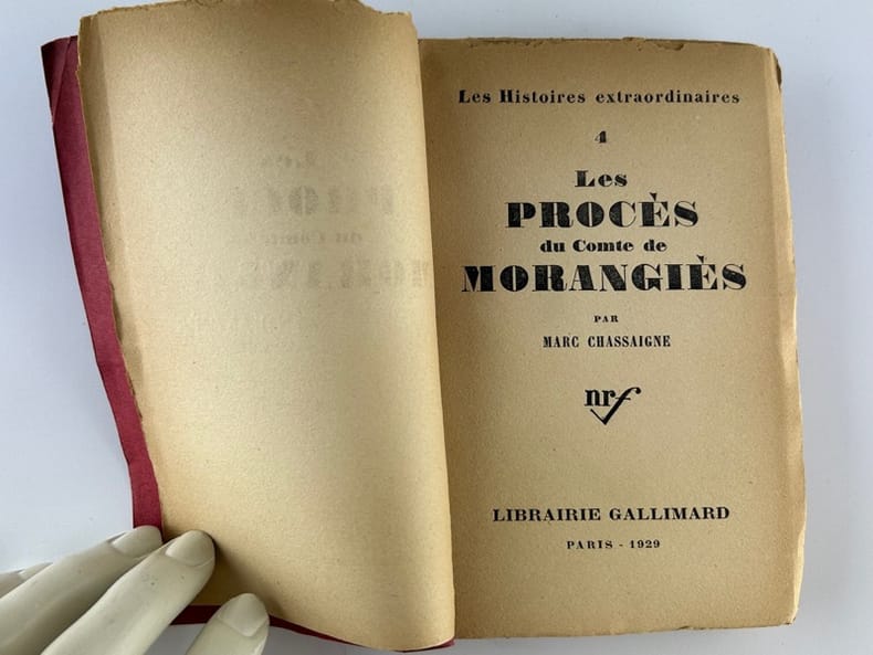 Paris Librairie Gallimard, Les Histoire extraordinaires 4 1930, in-12, broché, 228p. Exemplaire du service de presse, augmenté d'un envoi autographe signé à Mme Lemarié (Berthe Lemarié, secrétaire-collaboratrice de Gallimard). Ex-libris de son époux Jean Lemarié, contrecollé sur le 2e plat. La collection Les histoire extraordinaires a été confiée au biographe Jean Lucas-Dubreton, dont 16 titres en tout sont parus (4 au format in-8° tellière et 12 au format in-16° couronne). Manques de papier au dos. Toutefois solide exemplaire. Intérieur bon. Peu courant.