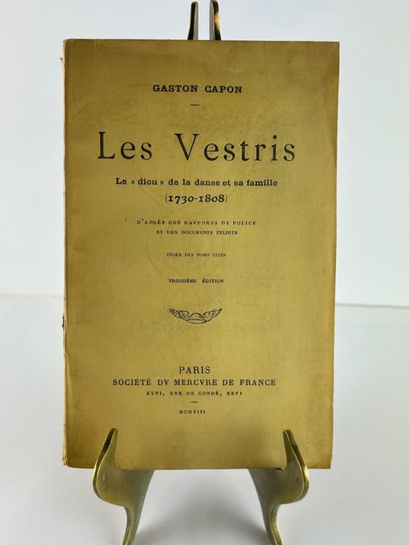 Exemplaire numéroté (441). Il existe peu de monographies sur cette dynastie de danseurs du XVIIIe siècle : celle-ci se concentre particulièrement sur Angiolo Maria Gasparo (1730-1809) et Auguste (1760-1842).Gaston Capon (1867-1940) s'est spécialement consacré à l'histoire des moeurs parisiennes du XVIIIe siècle.Cachet humide G. d'Allix. - - VENTE PAR CORRESPONDANCE UNIQUEMENT - LIEN DE PAIEMENT, NOUS CONSULTER.