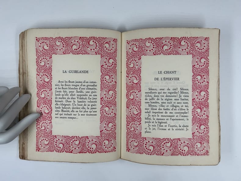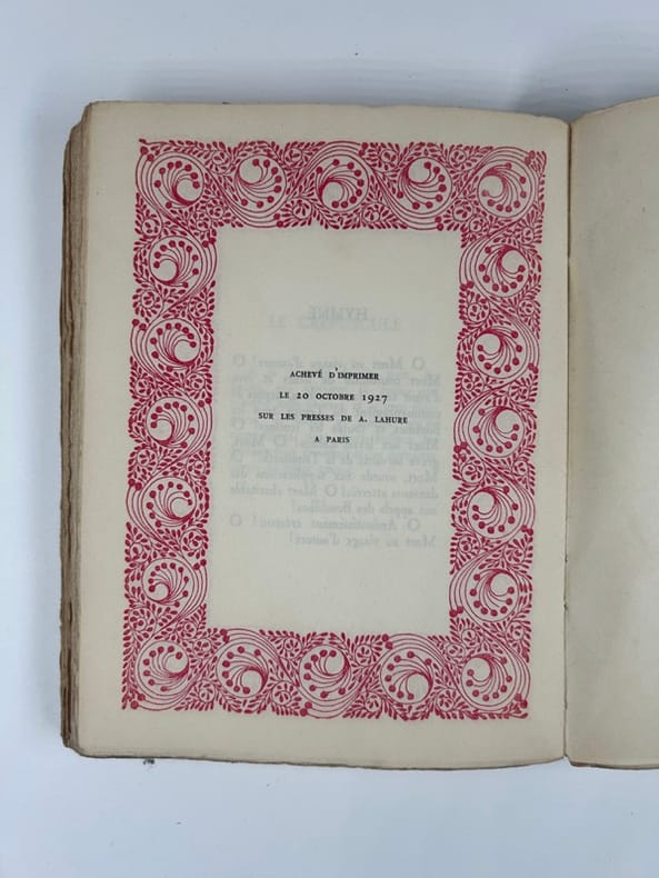 Flammarion 1927 In-8 demi-basane, dos à nerfs, filets, roulettes et cartouche dorée en long, tête dorée, couvertures conservées, non paginé. Illustration hors texte, encadrement du texte d'un décor végétal rouge. Bon exemplaire