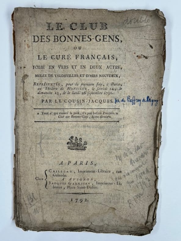 Paris/Avignon Chez Cailleau, Chez Garrigan 1792 14x21cm brochure 48p. Etat d'usage.