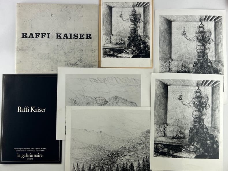 11 reproductions nb, 3 en couleurs, biography. Joint 5 photos de presse NB, dont une collée sur carton et le carton d'invitation à l'exposition du 12 mars - 2 avril 1981 à la Galerie Noire, Paris.