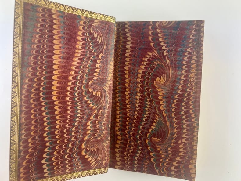Paris, Librairie Alphonse Lemerre, sans date , 10x16cm, plein maroquin à nerfs, toutes tranches dorées, coupes ornées d'un double filet et contreplats d'une frise, signet,, 256p. Bel exemplaire.