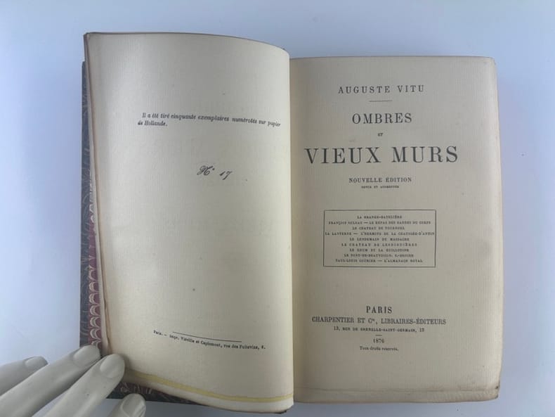 Paris Charpentier et Cie 1876, in-8 (13x19,5cm), demi-maroquin à nerfs, têtye dorée, non rognée, couvertures conservées, 408p. Très bon état. Seul grand papier.
