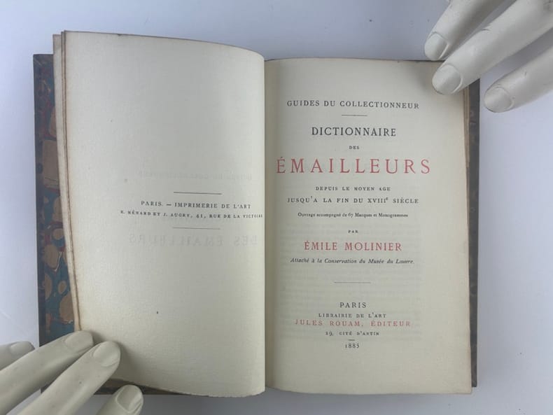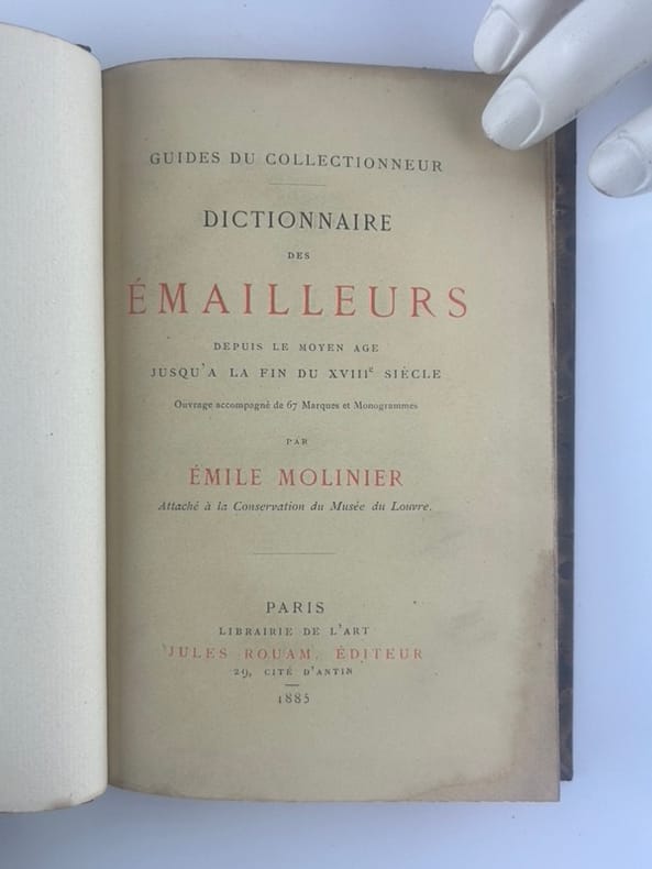 Paris Librairie de l'Art. Jules Rouam, éditeur 1885 in 12 (18x12) 1 volume broché, couverture rempliée, 113 pages [1], papier vergé, non rogné. 67 marques et monogrammes reproduits. Emile Molinier, 1857-1906. Bon exemplaire