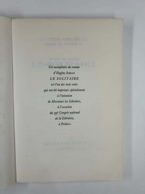 Paris Mercure de France 1973, in-8, broché sous jaquette éditeur, 193p. Edition originale. Exemplaire signé. Un des 300 exemplaires imprimés spécialement à l'intention de Messieurs les Libraires à l'occasion du 39° congrès national de la Librairie à Poitiers.