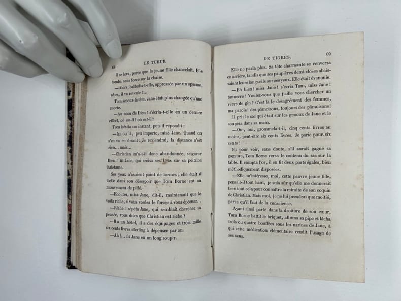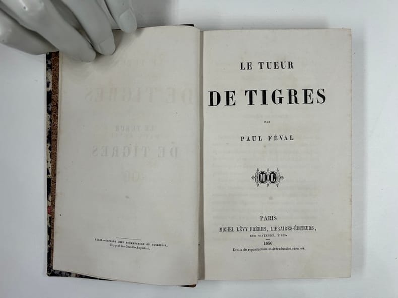 LE TUEUR DE TIGRE Paul Fiéval relié à la suite : Blanchefleur Nouvelles éditions. Relié demi cuir, 180x100, jolie reliure, bel exemplaire, 315, 324pages Paris, Michel Lévy 1861 & 1866 ref/165