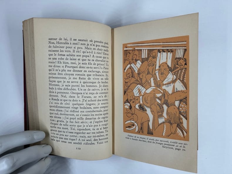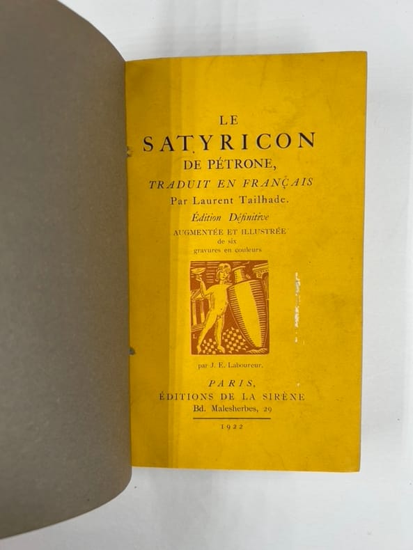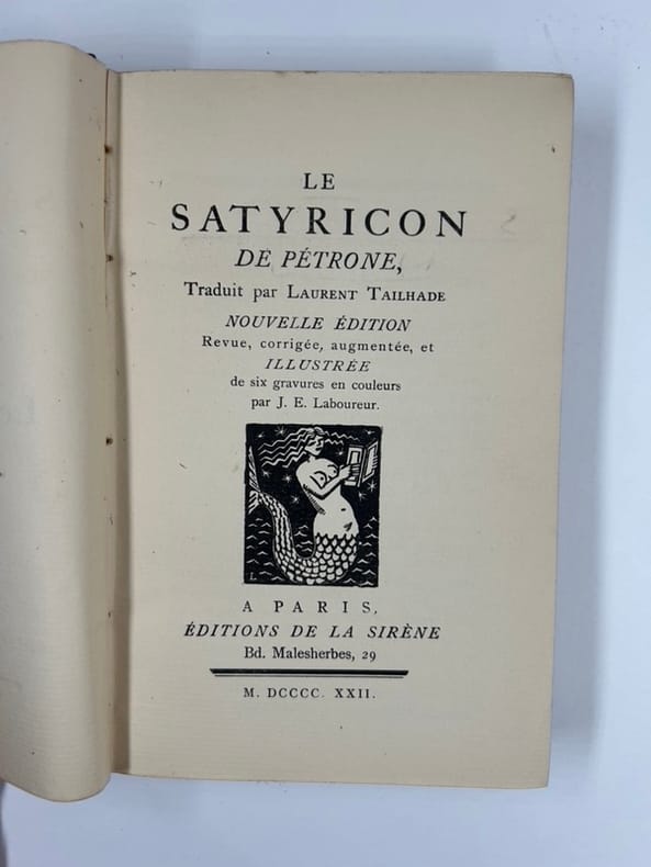 Paris Editions de la Sirène 1922, in-12 (12x18cm), plein bradel, couvertures conservées, 306p. Glossaire en fin d'ouvrage pour faciliter l'intelligence du Satyricon. Bon état.