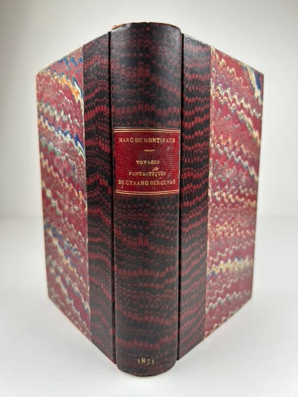 Paris Librairie des Bibliophiles 1875 in 12 (17,5x11) Un volume reliure demi maroquin brique de l'époque, dos lisse, couverture conservée, LXXIII et 281 pages. Tome premier renferme: Histoire comique des estats et empire de la lune, Histoire comique des estats et empire du soleil. Tirage limité à 320 exemplaires numérotés, celui-ci un des 300 exemplaires numérotés sur papier vergé. Bel exemplaire