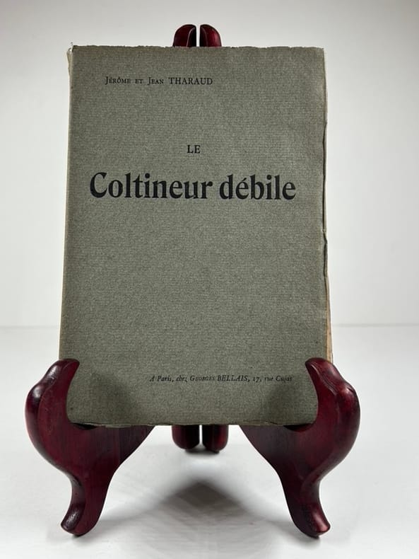 "Edition originale. La librairie Georges Bellais est celle de Charles Péguy que les frères Tharaud soutenaient tant moralement que financièrement. Tout comme pour ""Jeanne d'Arc"" et ""Marcel"", on trouve la liste de ouvriers typographes de l'imprimeur Georges Richard et Husson à Suresnes. Complet de la lithographie en frontsipice de De Groux, imprimée sur Japon. Infime manque au haut du dos, couverture effrangée, bon exemplaire. PRIX PORT ENVOI EN COLISSIMO INCLUS POUR LA FRANCE MÉTROPOLITAINE (Forfait de 5 euros déductible pour une remise en main propre. Nous consulter pour un envoi vers une autre destination)."