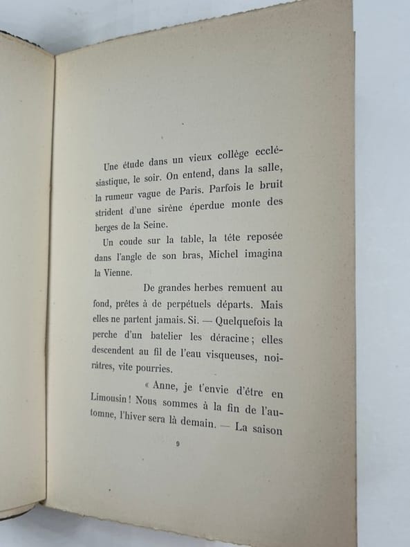 Paris, chez Georges Bellais, 1898, in-8, 102 pp, Broché, couverture imprimée, Édition originale du premier roman des frères Tharaud, illustré d'un frontispice en noir d'Henry de Groux, tiré sur Japon. Dos insolé. Couverture rigide