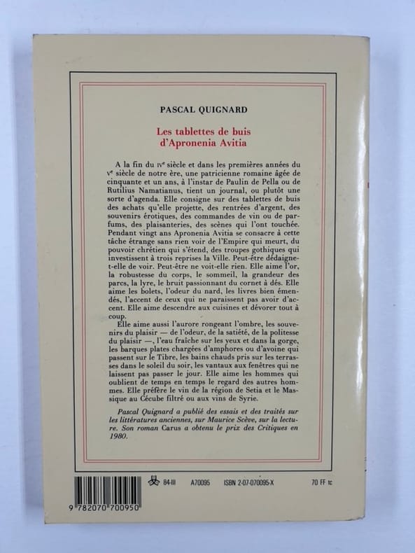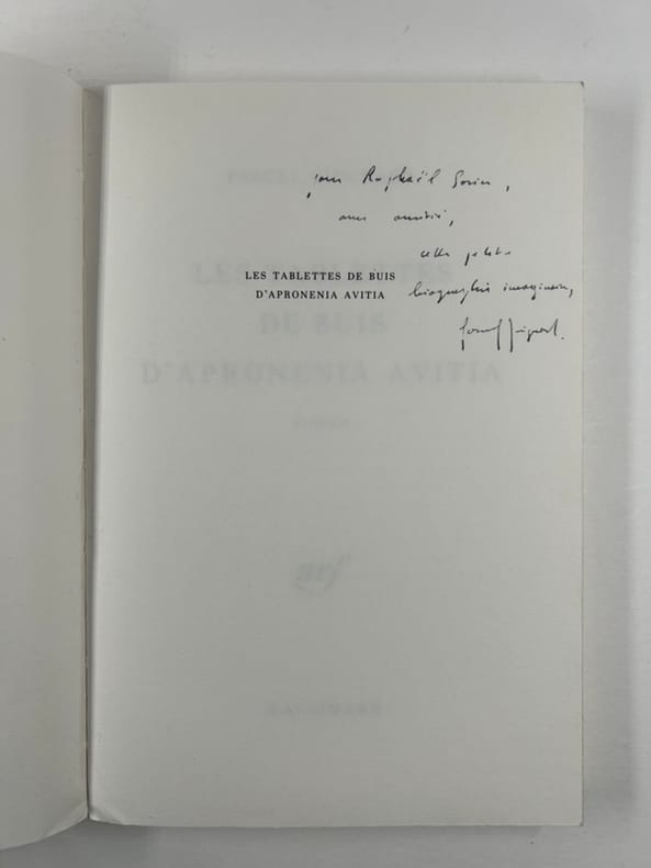 Paris Gallimard 24 février 1984, in-8, broché, 145p. Edition originale dont il n'a pas été tiré de grand papier. Envoi de l'auteur à l'éditeur et critique littéraire Raphaël Sorin.