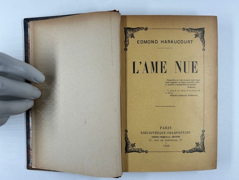 Paris Bibliothèque Charpentier. Eugène Fasquelle éd. 1908, 12,5x19cm, demi-chagrin, dos à nerfs, couverture conservées, 278p. Ex-libris Ferdinand Magnien. Bon exemplaire.