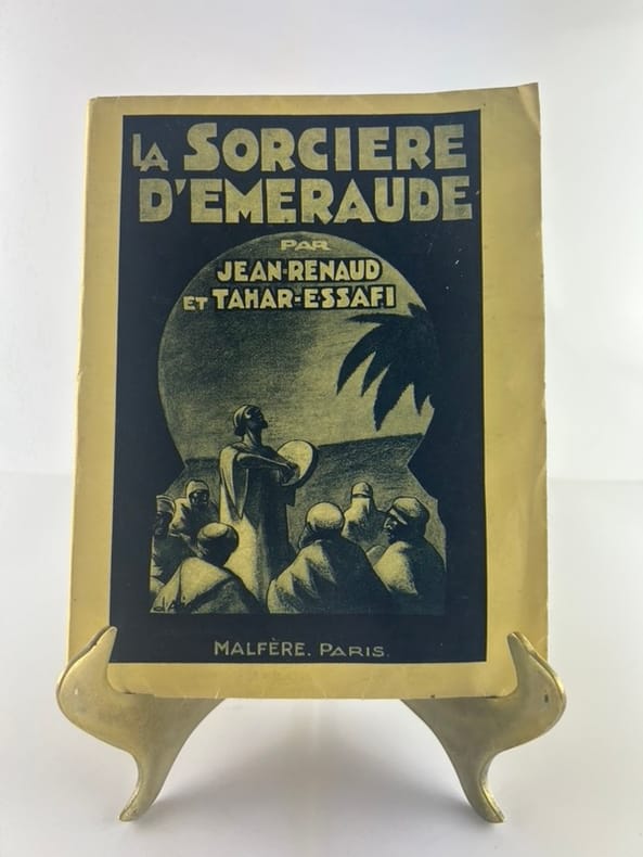 Malfère, Paris, 1929. Un volume in-8 broché, sous couverture jaune et bleue rempliée, 157 pages. Bel exemplaire numéroté (n°920) sur Turner vert, envoi de Tahar Essafi.