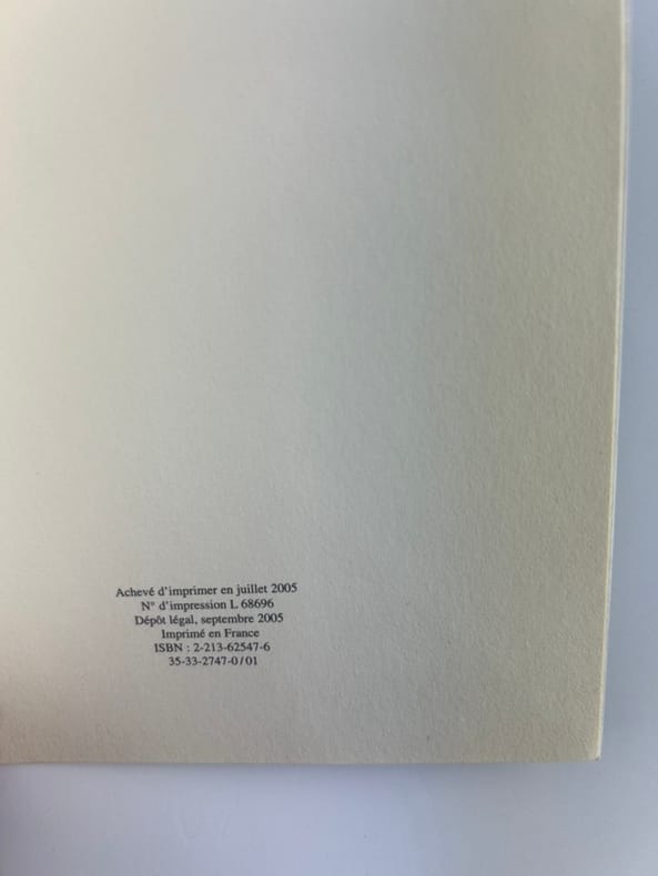 Paris Fayard 2005, in-8, broché, 485p. Exemplaire du premier tirage avec achevé d'imprimer en juillet 2005 et dépôt légal en septembre.