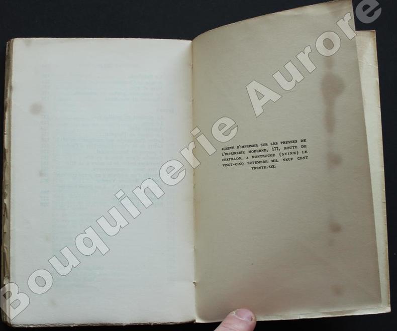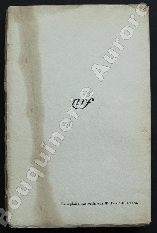 1936 P., NRF Gallimard, 1936, 1 vol. in-12 (188 x 120 mm) broché sous couverture blanche imprimée en noir et rouge, de 235 pp. - (1) f. (achevé d'imprimer).Petites déchirures en haut et bas du dos, tache grasse tout au long du plat inférieur ayant transpercé et affecté légèrement les 2 derniers feuillets, bon exemplaire par ailleurs.