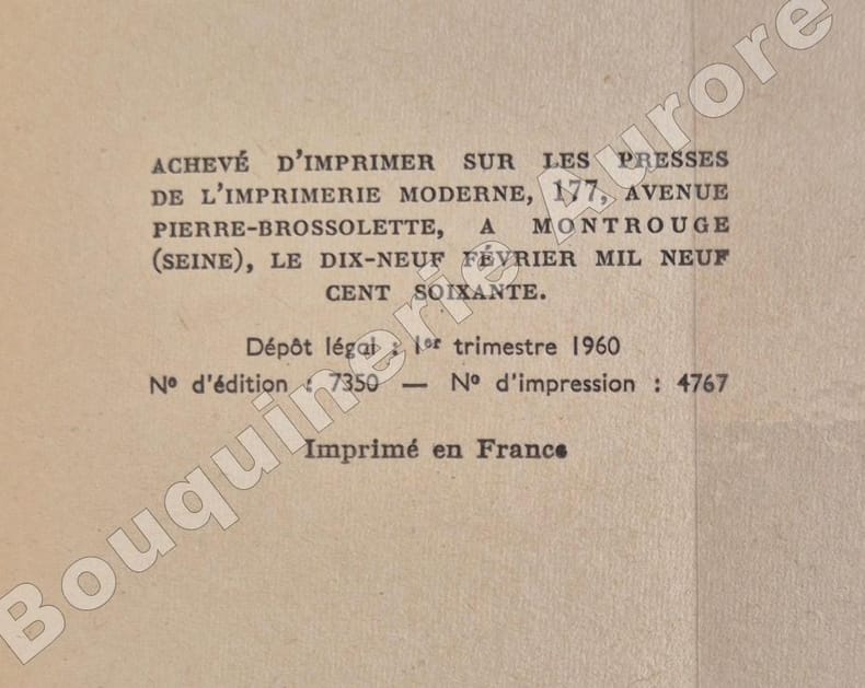 1719 P., NRF Gallimard, 17 février 1960, 1 vol. petit in-8° (208x 142 mm) broché sous couverture blanche imprimée en noir et rouge, pagination particulière : XI pp. (feuillet blanc, faux-titre, titre, préface de Michel Mohrt), puis le texte commence à la page 7 (!) ("Première partie") 380 pp. - (2) ff. (table et achevé d'imprimer), complet comme tel.Papier légèrement jauni, très bel exemplaire en grande partie non coupé.