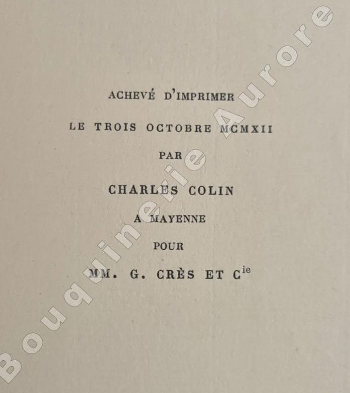 P., Georges Crès et Cie, 1912, 1 vol. in-12 (203 x 133 mm) borché sous couverture crème imprimée en noir et rouge, rempliée, de 126 pp. - (1) f. (achevé d'imprimer).Très bel exemplaire.