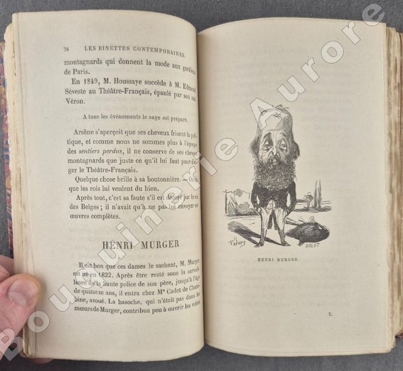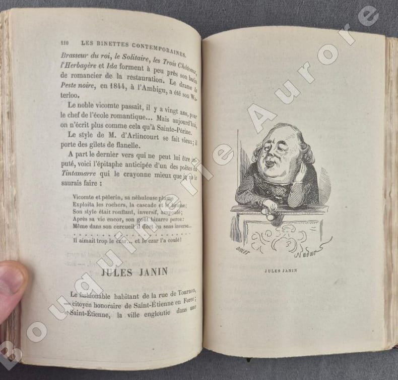 Illustré de 60 portraits-charge dessinés par Nadar et gravés par Didlot, accompagnant autant de biographies de littérateurs français contemporains.Réédition en 1 volume des 10 fascicules parus chez Gustave Havard en 1854-1855.