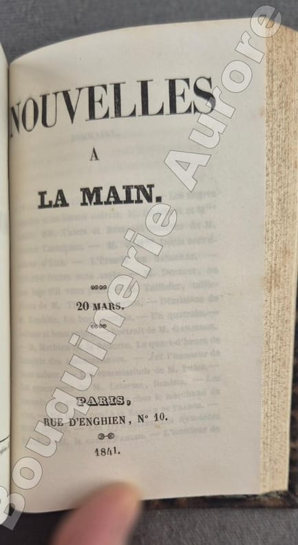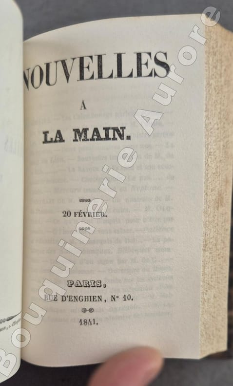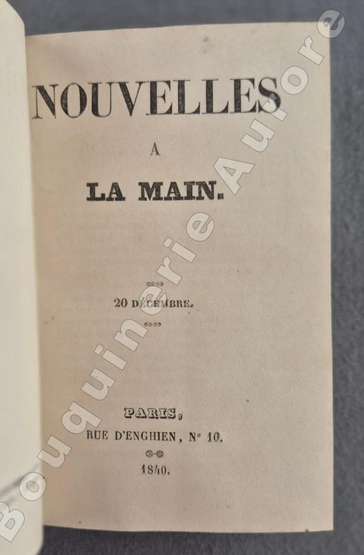1840 P., Rue d'Enghien, 1840, 1841, 4 numéros reliés en 1 volume in-18 (130 x 80 mm) 1/2 chagrin marron foncé, dos à 4 nerfs, titre doré, plats de papier marbré marron, reliure de l'époque, de 128 ; 125 - (1) f. bl. ; 119 ; 124 pp.Papier du 1e numéro très légèrement bruni, très bel exemplaire.