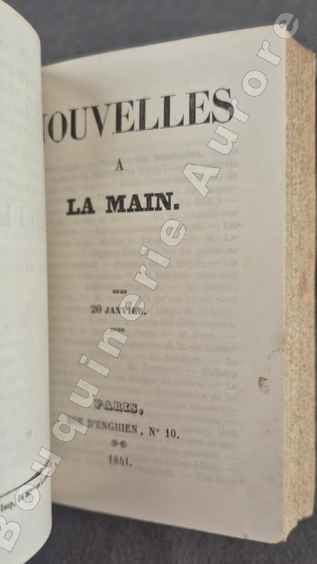 Rare tête de collection comprenant les 4 premiers numéros (20 décembre 1840, 20 janvier, 20 février, 20 mars 1841) de cette publication politique de Nestor Roqueplan.Victor-Louis-Nestor Rocoplan, dit Nestor Roqueplan (1805-1870), journaliste, écrivain, directeur d'opéra et de théâtre français. Dans les dernières années du règne de Louis-Philippe, Nestor Roqueplan fit paraître, sous le titre de Nouvelles à la main, des fascicules imprimés, en concurrence aux Guêpes dAlphonse Karr ; mais, malgré lanonyme gardé par le spirituel auteur, elles navaient pas lattrait de la clandestinité, qui est pour les publications de ce genre lun des principaux éléments de succès.