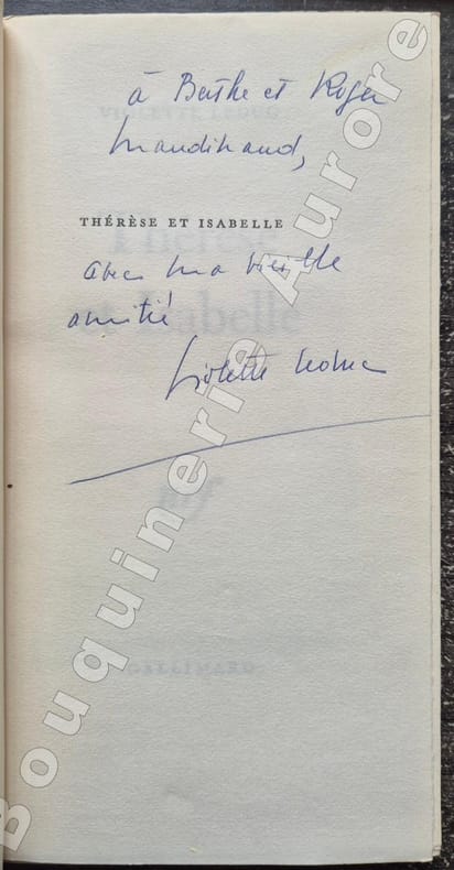Edition remaniée, mais toujours incomplète de "Ravages", exemplaire avec dépôt légal du 1e trimestre 1967.Envoi autographe signé de Violette Leduc à l'encre bleue en page de faux-titre : "A Berthe et Roger Mandinaud, avec ma vieille amitié, Violette Leduc".Berthe Mandinaud fut la dactylographe de "Ravages", elle est surtout connue pour avoir été la dactylographe attitrée de Simone de Beauvoir.