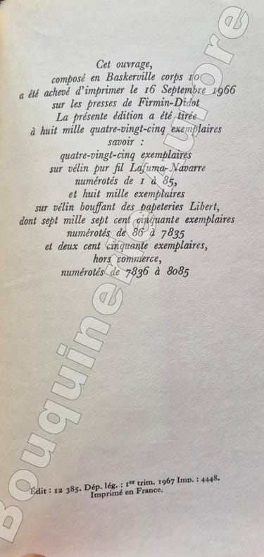 1966 Gallimard 1966 In8 broché 112 pages couverture rose seconde édition la première ayant un tout petit tirage
