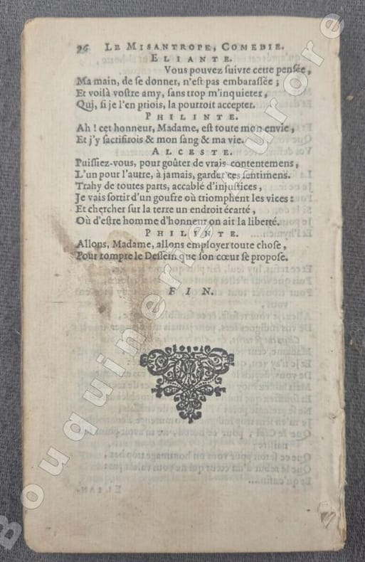 1679 Suivant la copie imprimée à Paris, M.DC.LXXIX (1679), 1 vol. in-18° (134 x 80 mm) en cahiers désolidarisés, de 96 pp.Petite déchirure sans manque en page de titre, tache brune en dernière page, mériterait un petit cartonnage pour être un bel exemplaire.