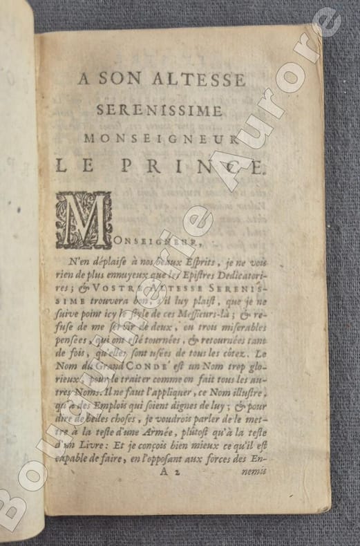 Edition elzévirienne (Page de titre à la sphère) du XVIIe siècle, sortie d'une reliure, sans aucune couverture ni page de faux-titre.