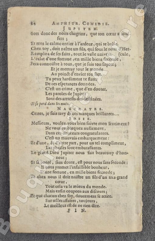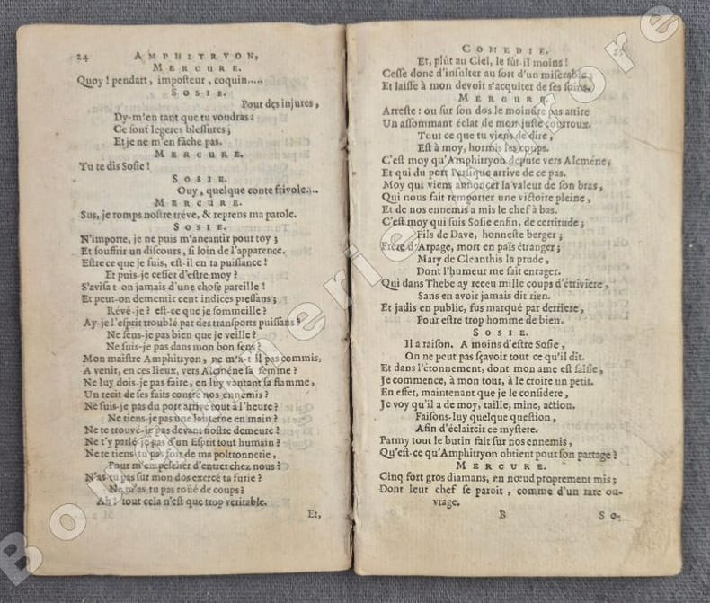 Jean-Baptiste Poquelin, dit Molière, né à Paris, baptisé le 15 janvier 1622 et mort à Paris le 17 février 1673, est un dramaturge auteur de comédies, mais aussi un comédien et chef de troupe de théâtre français qui s'est illustré au début du règne de Louis XIV. Merci de nous contacter à l'avance si vous souhaitez consulter une référence au sein de notre librairie.