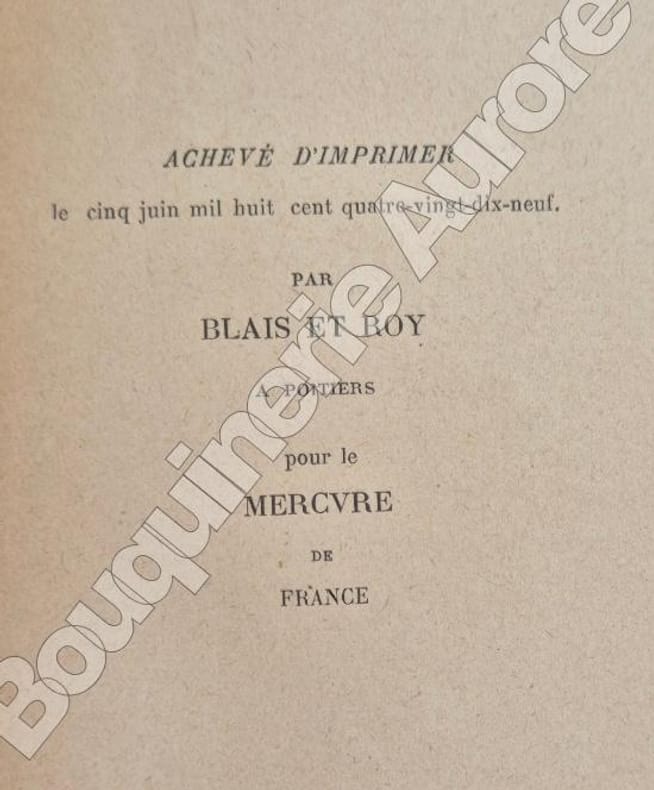 Mention fictive de "Deuxième édition" en page de titre, l'achevé d'imprimer est à la date du 5 juin 1899, tout comme l'E.O.Justification au trèfle vert en page de justificatif, après 12 exemplaires sur Hollande.