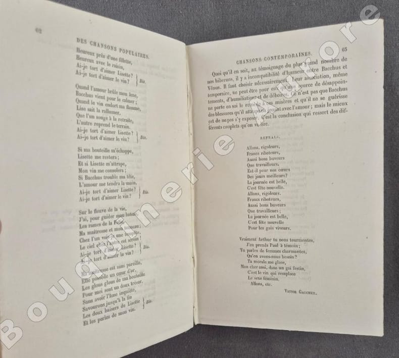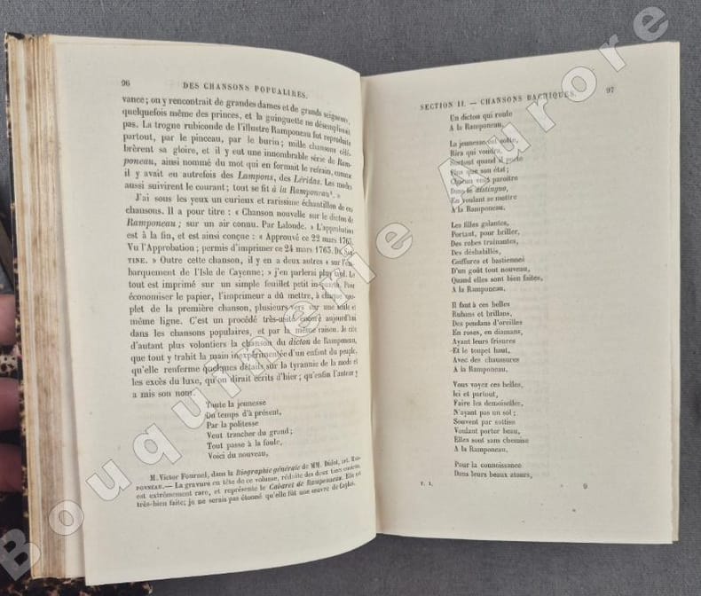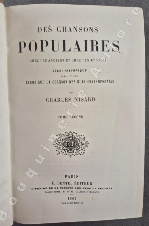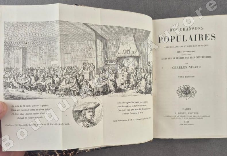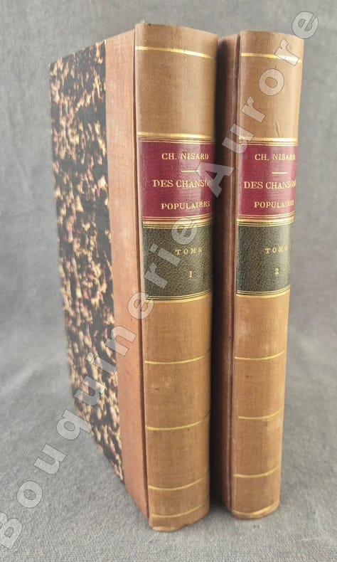 Planche dépliante en frontispice du tome I.Edition originale de cette superbe étude sur la chanson populaire.Importante table analytique in-fine.