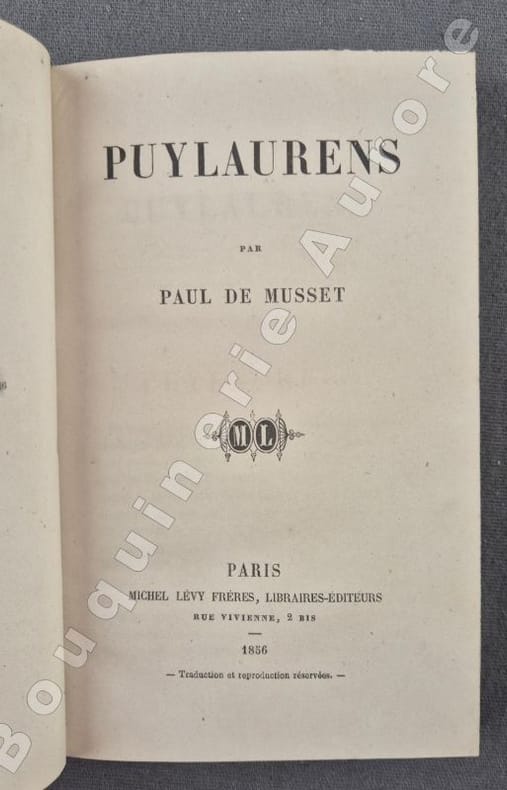 1856 P., Michel Lévy, 1856, 1 vol. in-12 (182 x 112 mm) reliure de l'époque 1/2 chagrin vert, dos à 4 nerfs, auteur titre et jeux de triples filets dorés sur les nerfs, plats de papier marbré vert, de (2) ff. (faux-titre et titre) - 320 pp.Bel exemplaire bien relié et exempt de rousseurs.