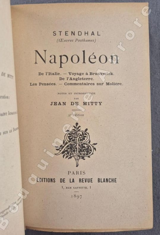 Portrait de Stendhal par Félix Vallotton en médaillon dans l'introduction.Mention de "deuxième édition" en couverture et page de titre, en tous points conforme à l'édition originale.