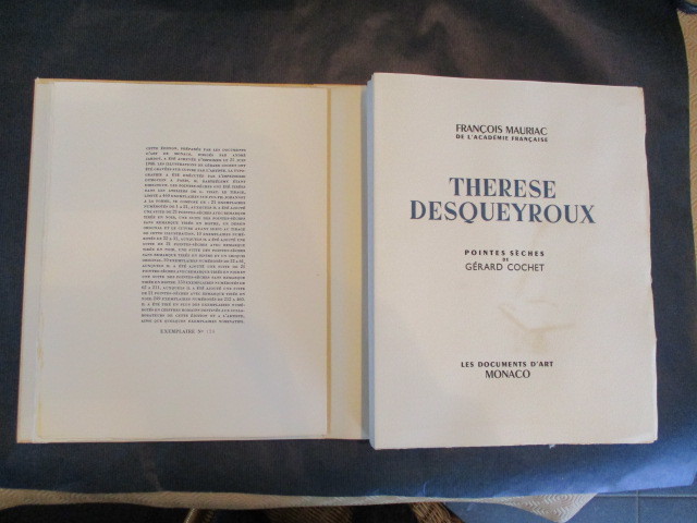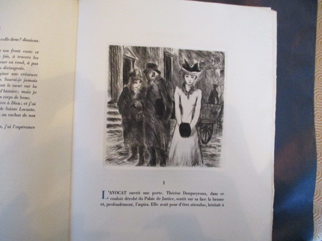 Lithographie originale de Clairin Résumé : Pour éviter le scandale et protéger les intérêts de leur fille, Bernard Desqueyroux, que sa femme Thérèse a tenté d'empoisonner, dépose de telle sorte qu'elle bénéficie d'un non-lieu. Enfermée dans la chambre, Thérèse tombe dans une prostration si complète que son mari, effrayé, ne sait plus quelle décision prendre. Doit-il lui rendre sa liberté ? Dans ce livre envoûtant, François Mauriac a réussi un portrait de criminelle fascinant. volume in-8 broché en parfait état, dans son emboîtage d'origine. 152 pp. En parfait état, Exemplaire numéroté Imprimerie Nationale/André Sauret, France, 1951 ref/83