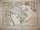Seconde édition, illustrée de 31 planches sur double page montées sur onglets dont 29 cartes et plans (16 dépliantes) dont 11 rehaussés en couleurs ; la première édition datant de 1788.XLI pages pour l'analyse des cartes. Reliure en plein velin vert d'époque. Dos à nerfs janséniste. Pièce de titre en maroquin rouge. 2 coins adroitement restaurés et petite restauration sur les 2 premiers nerfs. Très bel exemplaire. Bel atlas qui, outre la carte coloriée de la grande Grèce et ses îles donne les cartes des différentes provinces, Le plan d'Athènes, l'élévation des principaux monuments (Parthénon, Théâtre grec, maison grecque...), certaines grandes batailles. Il fut à l'origine conçu pour accompagner le Voyage du jeune Anacharsis de l'abbé Barthélémy, fantaisie romanesque d'un jeune philosophe voyageant dans la Grèce antique au IVe siècle avant J.C. Il était vendu à part ou avec la collection des 5 volumes du roman. - Photographies et détails sur www.Edition-Originale.com -