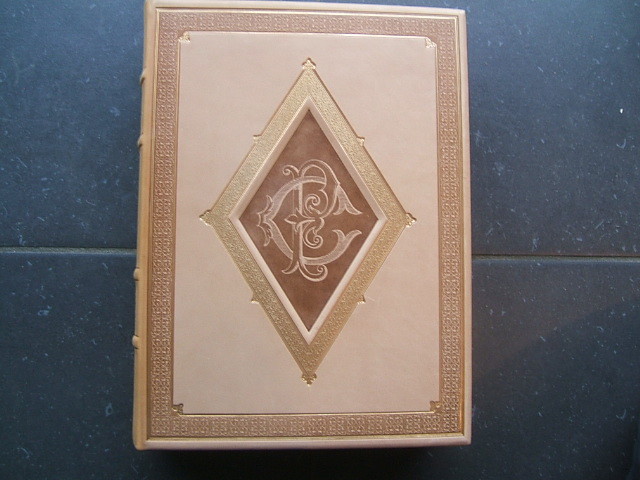 1990 Les Points Cardinaux, 1990. In-4, 203 pages plus achevé d'imprimer. Reliure éditeur pleine basane beige, dos à nerfs orné d'un fleuron à froid, titre doré, décor à la plaque sur le premier plat : encadrement d'une frise à froid avec filets dorés et motif central en losange avec les initiales PC entrelaçées, filets d'encadrement à froid sur le deuxième plat, tranches dorées, signet, doublures et gardes de soie moirée crème, étui.17 illustrations dont huit hors-texte (dont une double) de Marine CORBEL, miniatures coloriées au pochoir, rehaussées à l'or et au palladium. Tirage limité à 526 exemplaires, un des 375 vélin d'Arches comprenant un état définitif des illustrations.