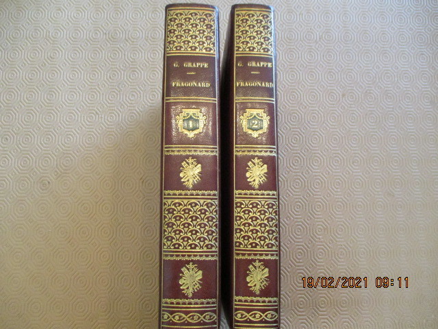 " Paris, l'édition d'art Piazza, 1913, deux volumes format in-4°, 30 x 23 cm, [1] 134 pp + 50 planches hors texte ; [2] 77 pp + 50 planches hors texte (qq. en couleurs). Tiré à 500 exemplaires sur papier Japon. (ceci nr. 234/500). Reliure uniforme en dem-chagrin brun à coins, Dos lisse avec une décoration dorée abondante? Tranche de tête dorée. Couvertures conserfvées. Reliure avec très légères traces d'usage sinon bel exemplaire avec un intérieur impeccable. Bel ouvrage qui offre une liste des estampes executées d'après des oeuvres de Fragonard..Les illustrations sont montées sur des feuilles pourvues d'une bordure typographiques. (Due to larger/size weight of this book, additional shipping charges may apply depending on customer location.) (Frais de port majorés à cause du poids de ce livre)."