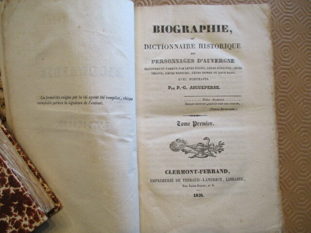 1834 Clermont, Berthier, 1834. 2 tomes in-8, 334 et 374 pages non rognées plus errata. Reliure récente demi basane brune, dos à nerfs filets et frises dorées, pièce de titre maroquin vert, titre or, couverture conservée. 18 portraits hors-texte lithographiés. Quelques rousseurs.