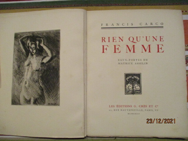 Exemplaire toute marges, numéroté sur vélin pur fil des papeteries du marais, N° 125. Double état de la gravure en frontispice (nue de femme). Maurice Asselin, 1882-1947, appartient à cette génération de peintres marqués par l'influence de Cézanne et la hardiesse des "fauves ".