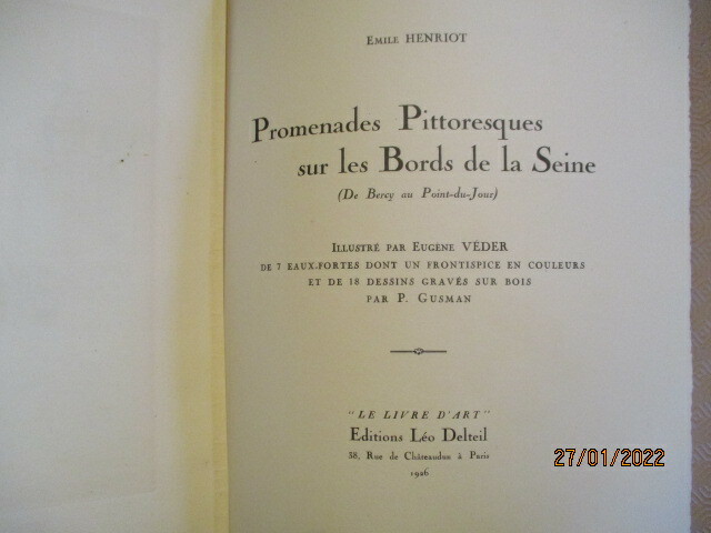 1926 Paris, Editions Léo Delteil, 1926. In-4 en feuilles, 78 pages plus achevé d'imprimer, sous couverture rempliée. Illustré par Eugène VEDER de 7 eaux-fortes sous serpendte légendée dont un frontispice en couleurs et de 18 dessins gravés sur bois par Gusman. Tirage limité à 252 exemplaires, celui- ci non numéroté sur vélin d'arches contenant une suite des 18 gravures sur bois. Quelques rousseurs.