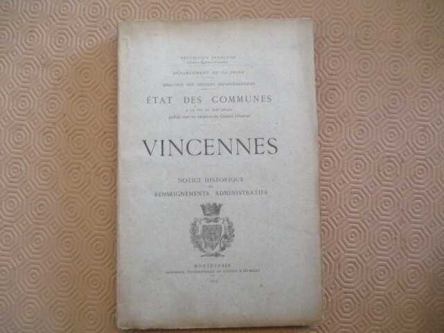 Montévrain : Imprimerie typographique de l’Ecole d’Alembert / Département de la Seine, Direction des affaires départementales (Etat des communes à la fin du XIXe siècle), 1904. Un volume in-8°, broché.