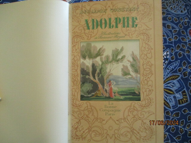 1944 Paris, La Bonne Compagnie, 1944. In-8, 191 pages plus achevé d'imprimer. Reliure époque demi maroquin fauve à coins, dos à quatre nerfs, plats de couverture conservés. 20 Illustrations de F. FARGEOT coloriés au pochoir par Berthelot. Tirage limité à 1000 exemplaires, un des 900 sur vémin teinté (N° 662). Dos à peine un peu passé. Bel exemplaire.