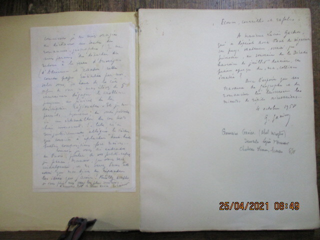 Deux longues lettres manuscrites de l'auteur et un envoi autographe signé de l'auteur. Couverture un peu poussiéreuse.